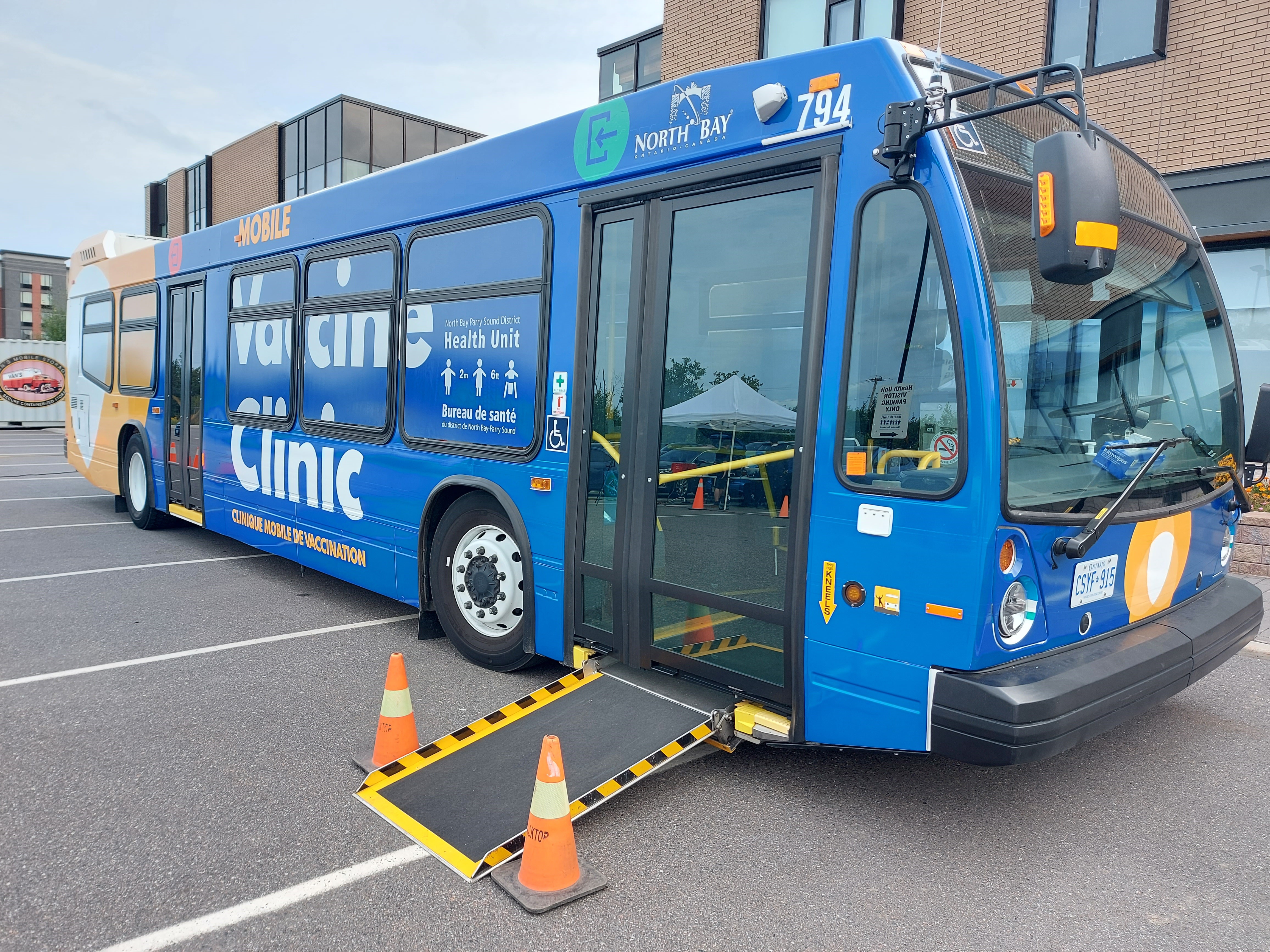 NIPISSING ET PARRY SOUND (ONTARIO) – Le vaccin contre la COVID-19 se rapproche des gens grâce au lancement, par le Bureau de santé du district de North Bay-Parry Sound (Bureau de santé) et la ville de North Bay, de la Clinique de vaccination mobile. Il s’agit d’un autobus de la ville spécialement aménagé. À compter du mardi 31 août, la clinique mobile accessible et commode sillonnera les routes dans le district du Bureau de santé pour aider à réduire les obstacles qui empêchent les gens de se faire vacciner contre la COVID-19.